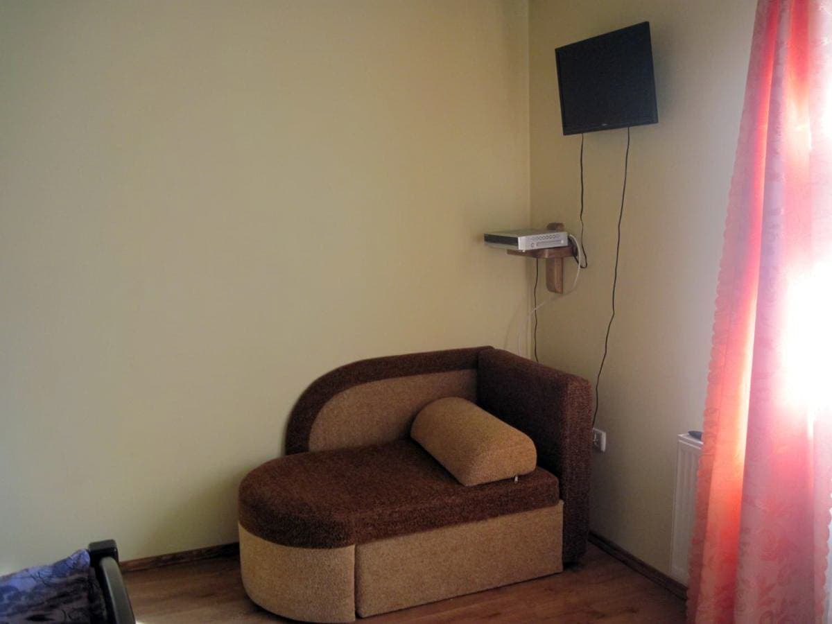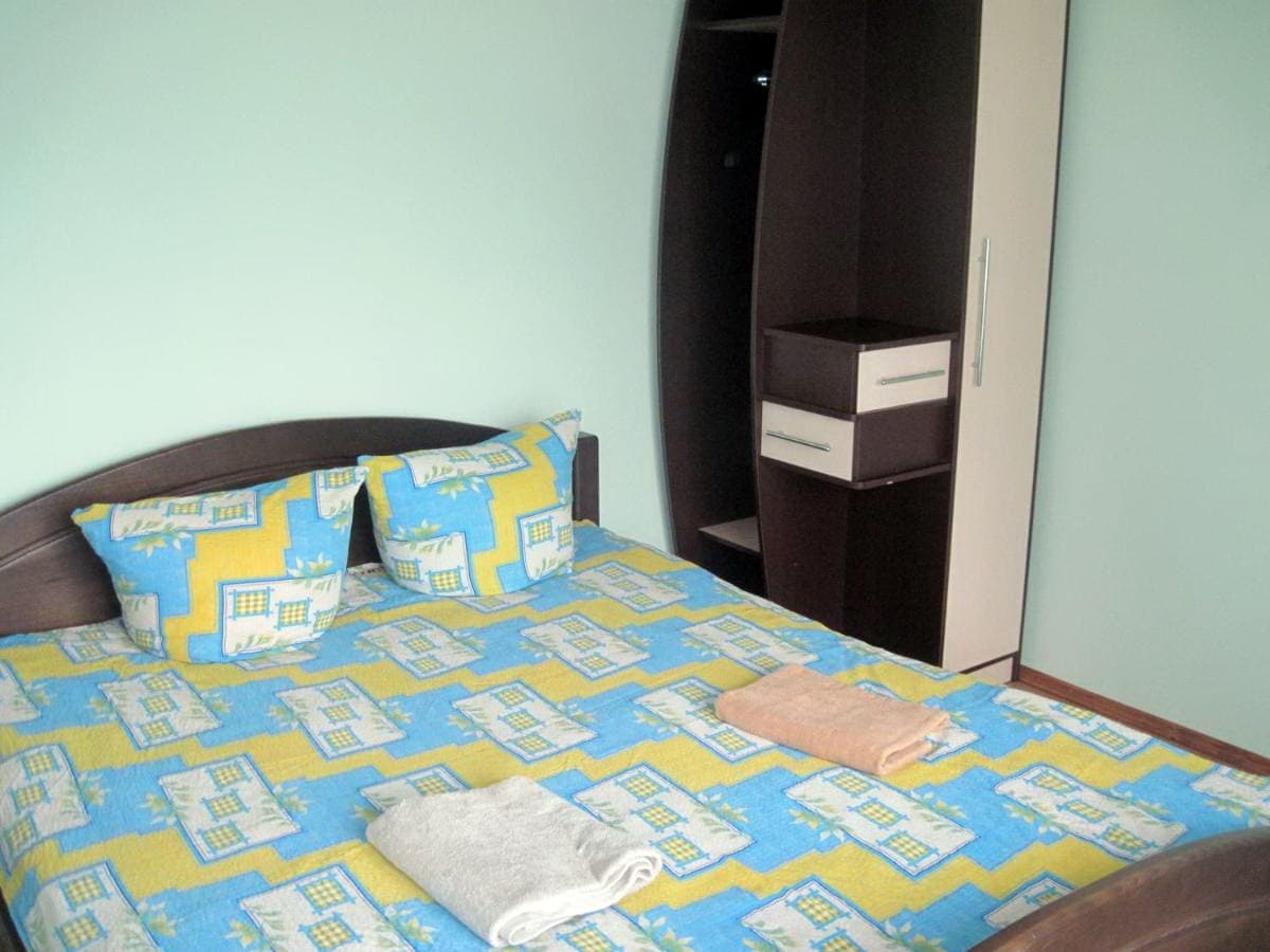 На третьому поверсі - кухня (електрична плита, мікрохвильова піч, холодильник, електричний чайник, посуд, мийка, обідній стіл); 3 двомісні номери (1 двоспальне ліжко або 2 односпальні ліжка, шафа для одягу, балкон, санвузол з душем, туалетом та умивальником).