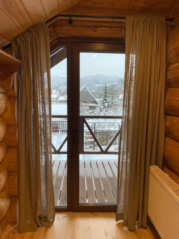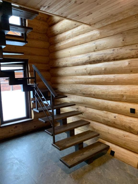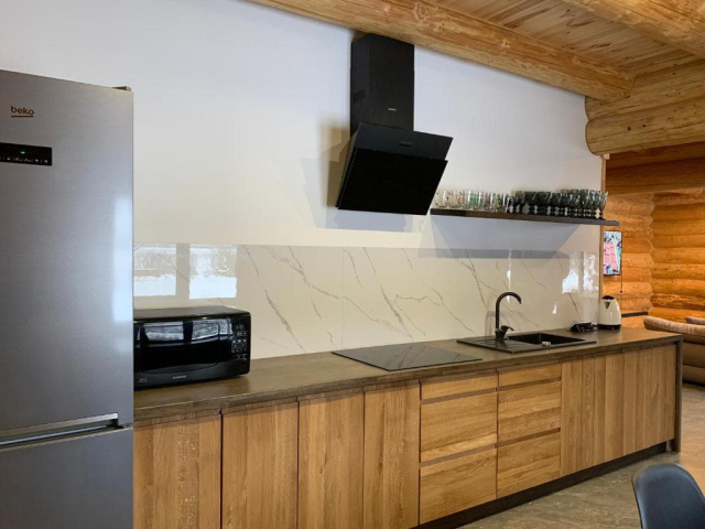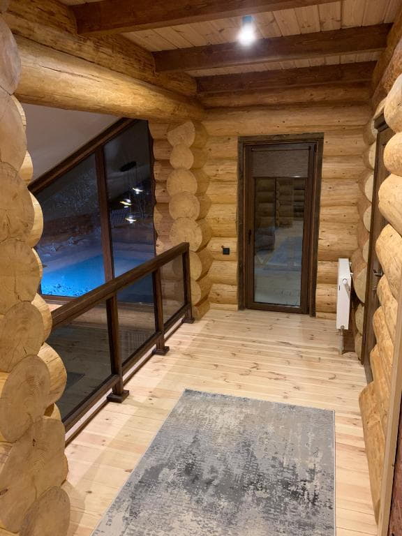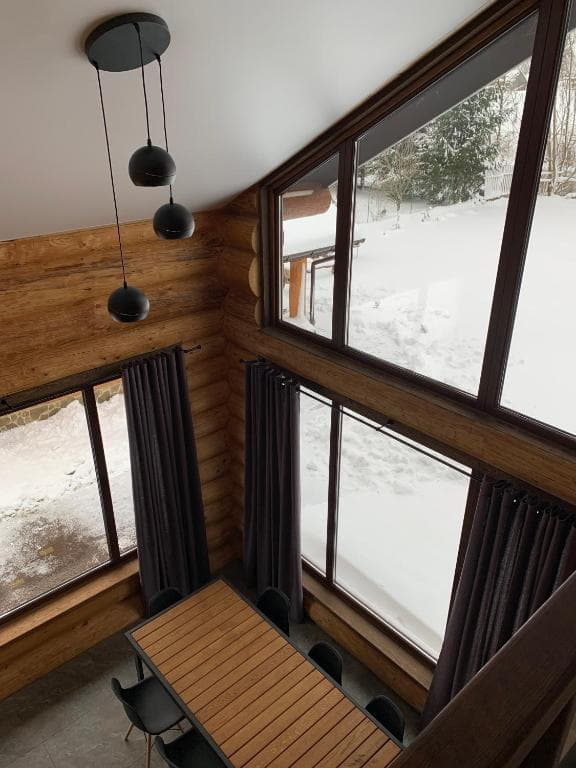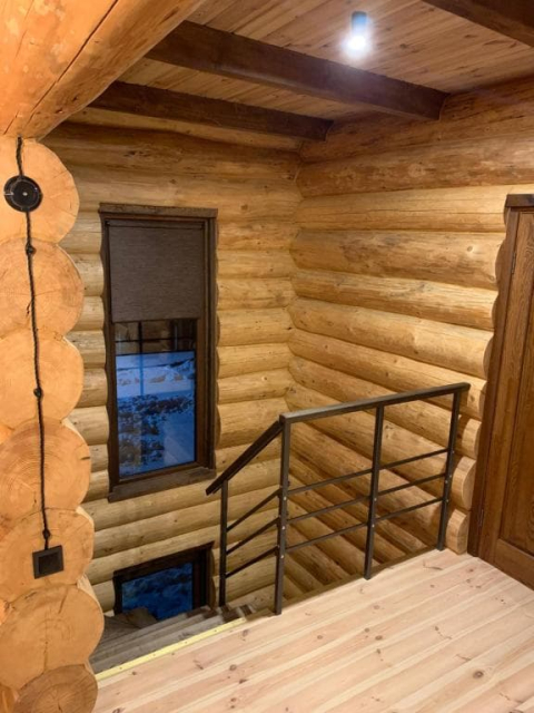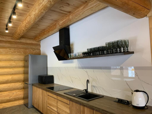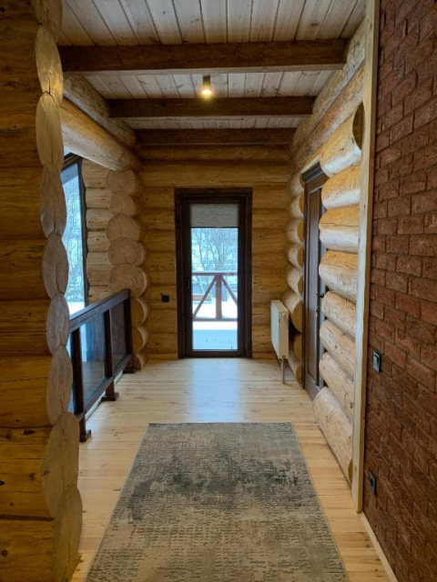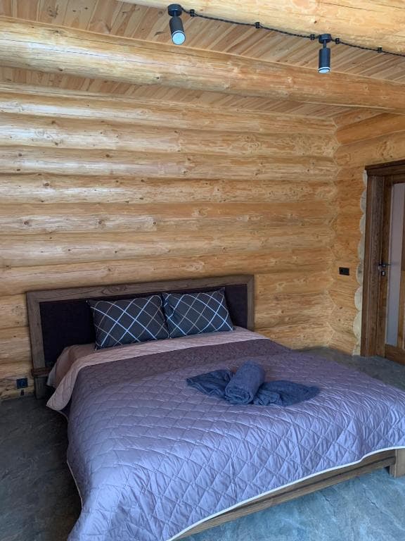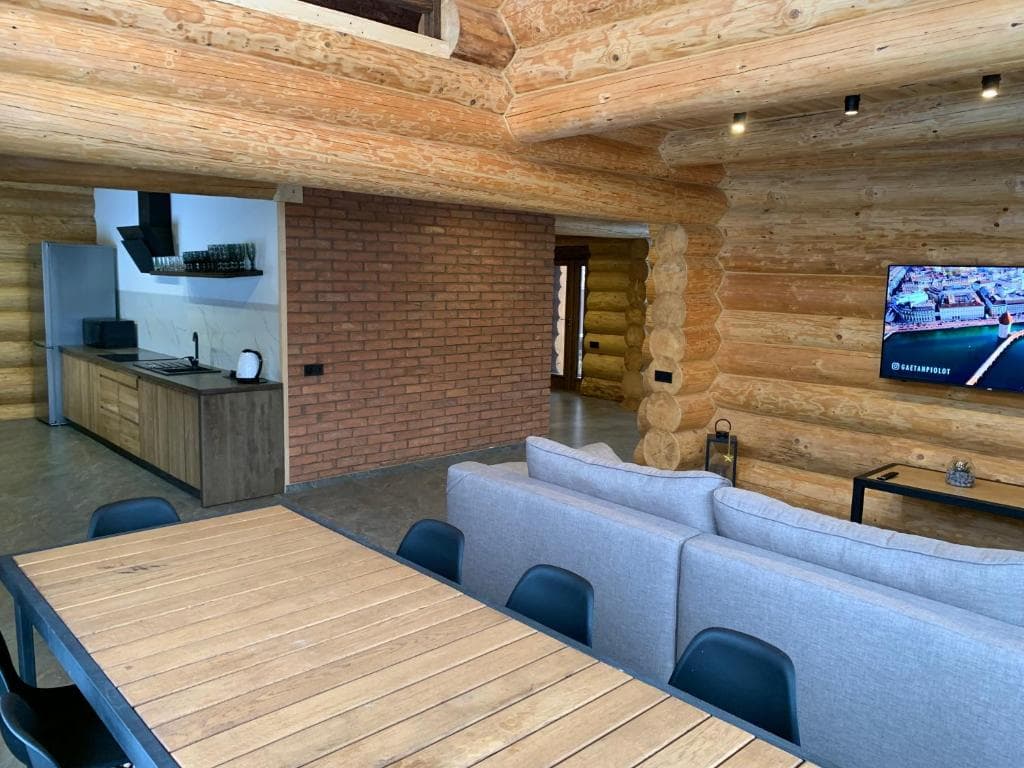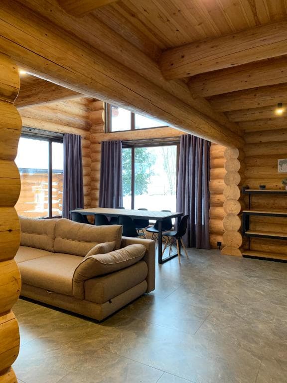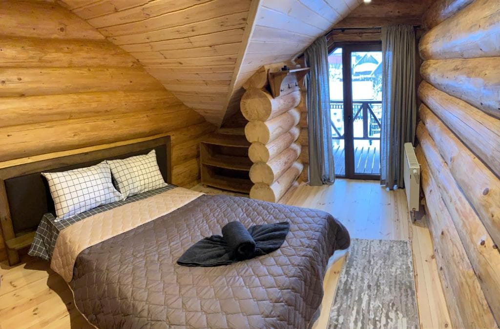 Двоповерховий дерев’яний котедж на закритій території, що вміщує до 12 гостей. На території також є сауна, критий мангал з альтанкою, дитячий майданчик та тераса над річкою — ідеальне місце для сімейного або компанійного відпочинку серед природи.