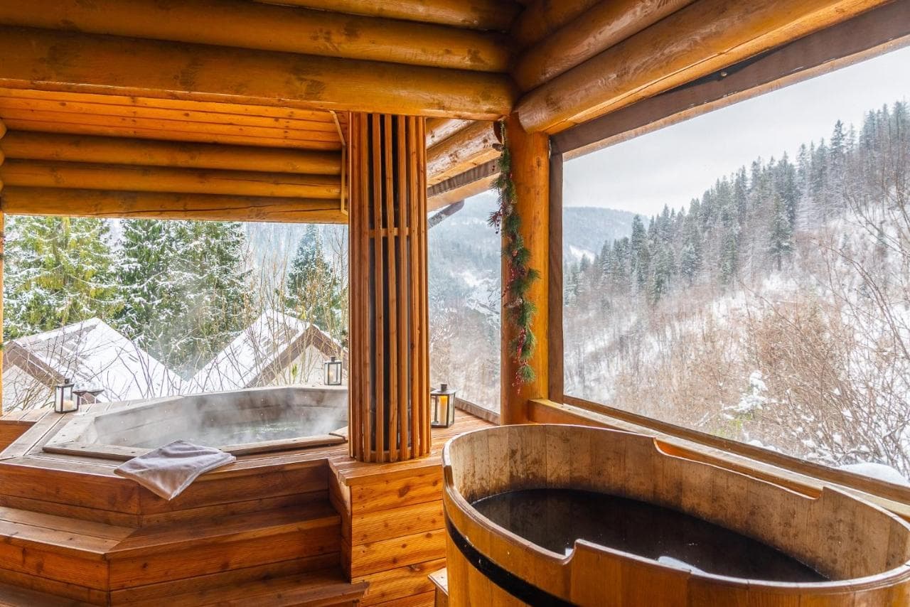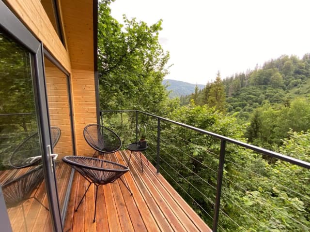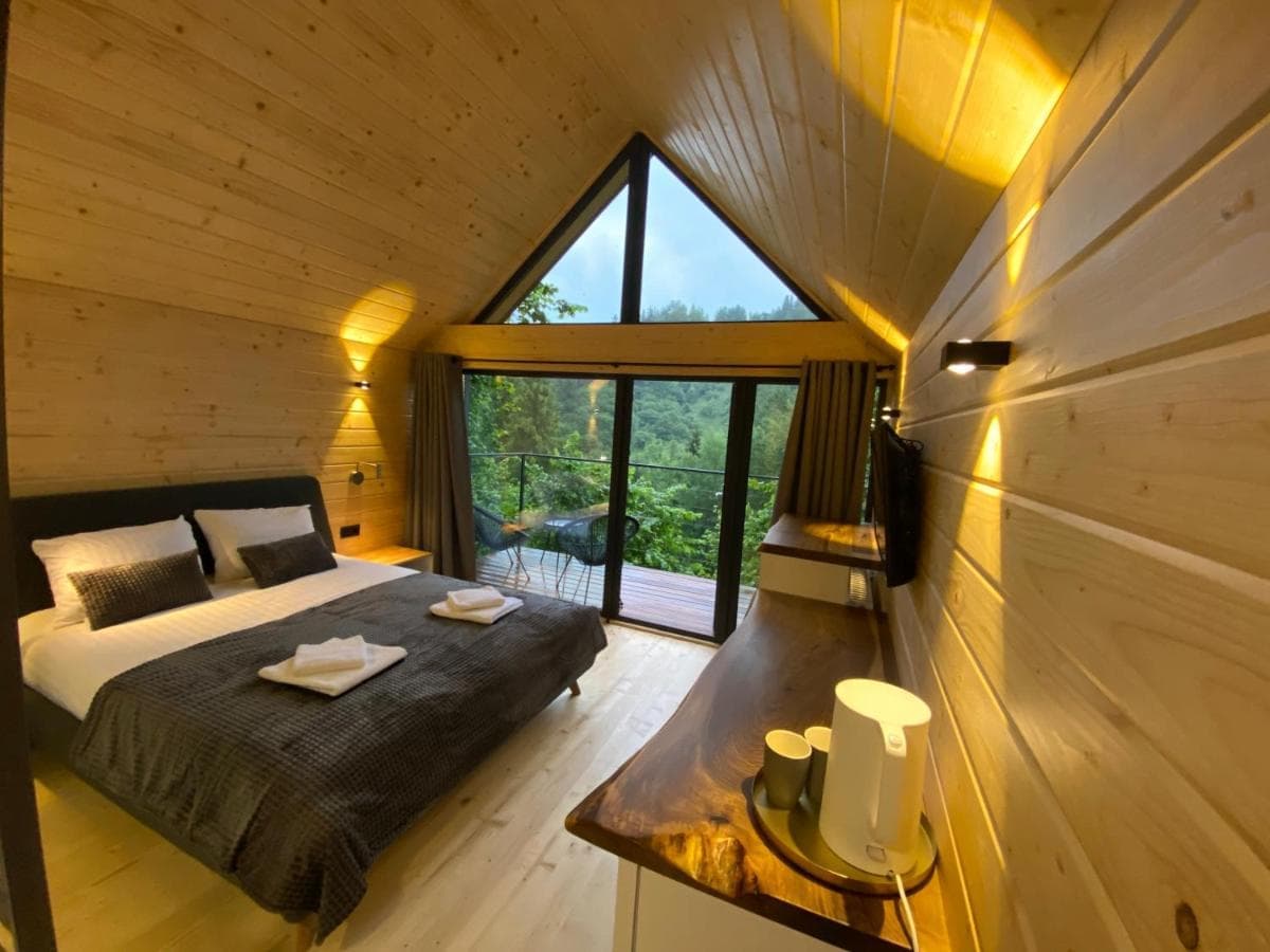Люкс з видом на гори – це котедж для пари з великим панорамним вікном;
