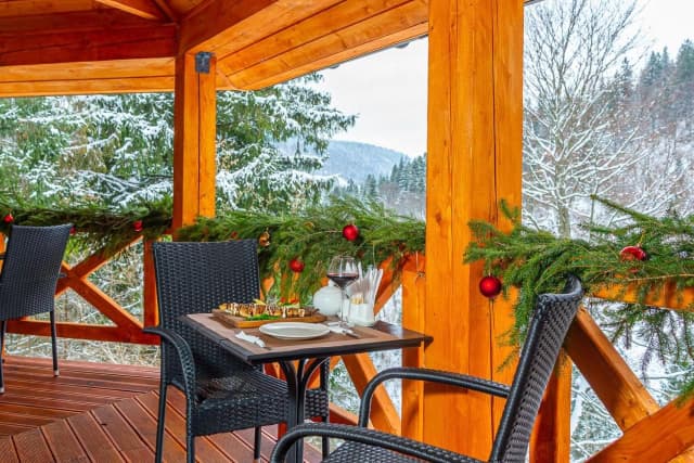 На території є ресторан де можна скуштувати страви локальної карпатської кухні, традиційні українські страви, а також справжню італійську піцу з помпейської печі, та мармурові стейки на грилі. Також, до Ваших послуг SPA-зона з сауною і чан з видом на гори. На території є паркова зона для прогулянок, дитячий майданчик, а влітку працює басейн.