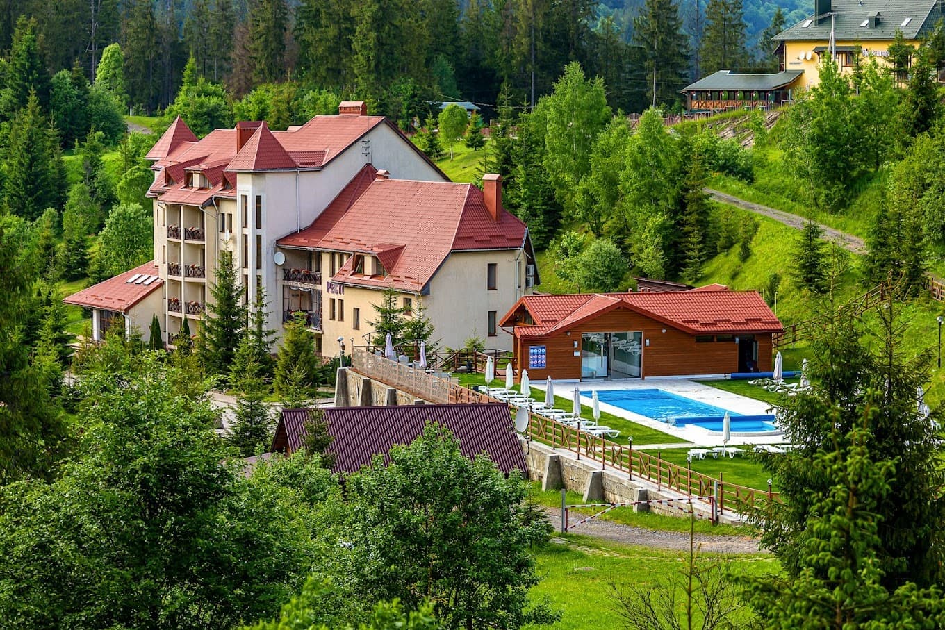 Готель має 24 комфортабельні номери (більшість з яких з балконом), а також повну інфраструктуру для відпочинку в будь-яку пору року, включаючи ресторан, сауну, більярд, настільний теніс і футбол. Також є дитячий майданчик та ігрова кімната. Влітку до ваших послуг зона відпочинку з басейном, шезлонгами та альтанками. Також влітку працює крісельний підйомник та пропонуються екскурсії на гору Високий Верх.