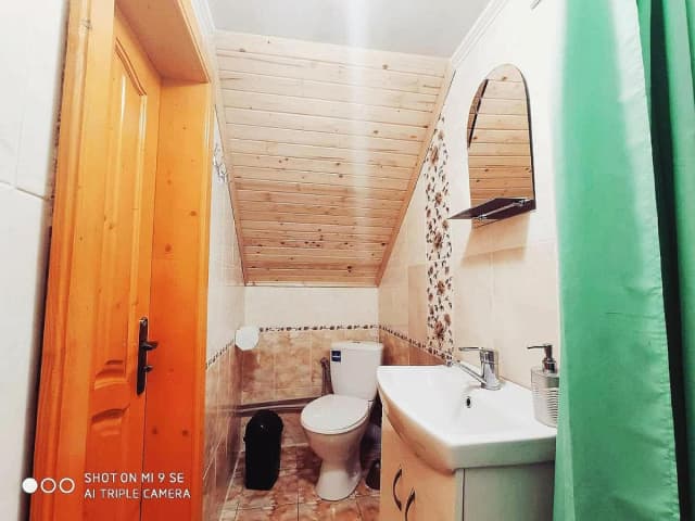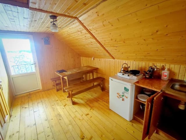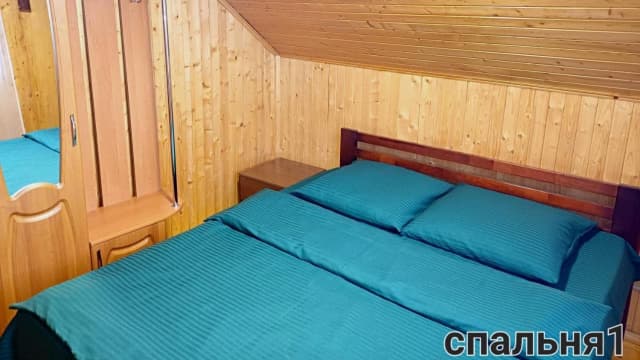 На другому поверсі (окремий вхід з двору) - тераса (стіл з лавкою); вітальня з міні-кухнею (мікрохвильова піч, холодильник, електрочайник, посуд, мийка, обідній стіл); 2 двомісні кімнати (в кожній - 1 двоспальне ліжко та шафа для одягу); санвузол (душ, туалет, умивальник).
