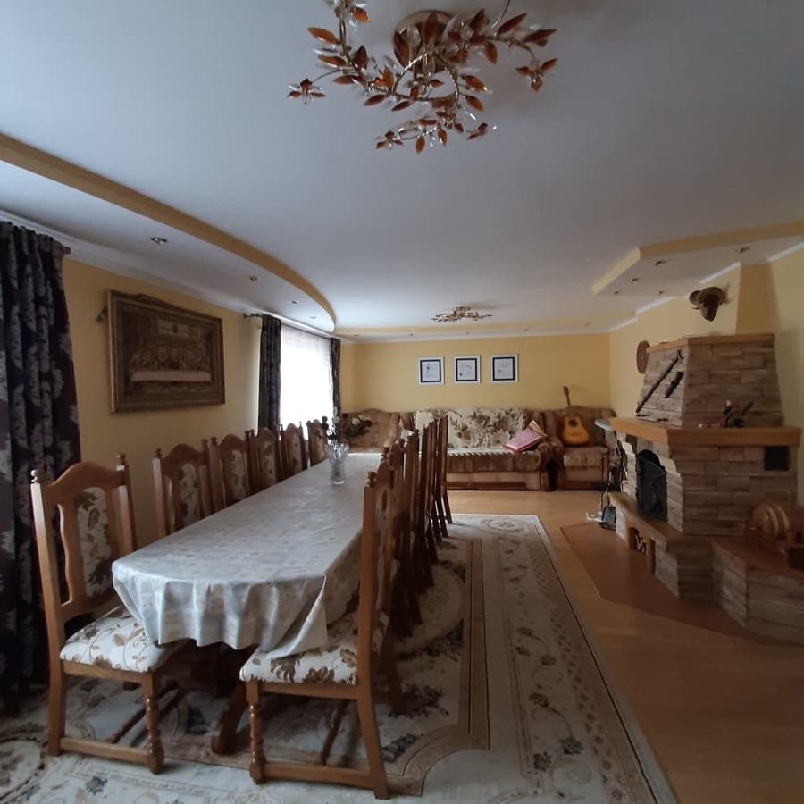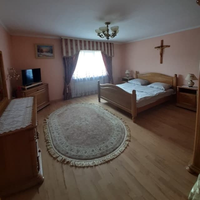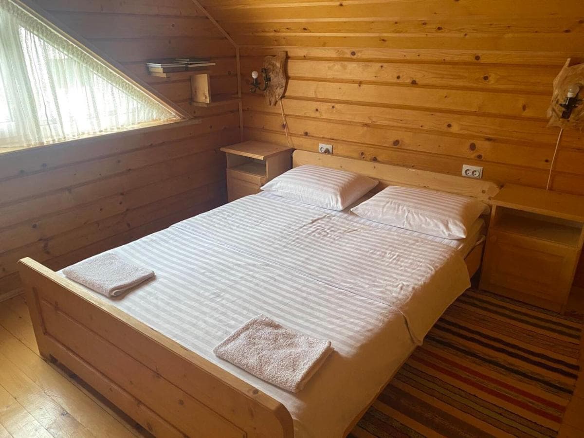 На першому поверсі розташована кімната відпочинку, ванна кімната та кухня. Номери на другому поверсі, на третьому розташована мансардна кімната. Також є окремий будинок котеджного типу. Гаряча вода постійно, опалення, телевізор, супутникове телебачення, фен, праска, пральна машинка, сауна.