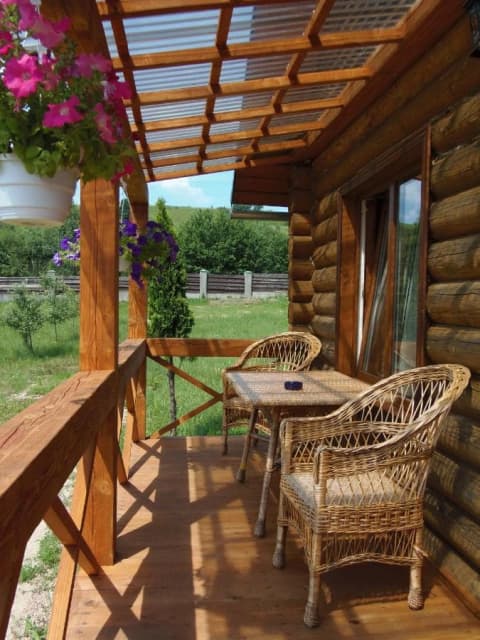 У розпорядженні гостей власна веранда з плетеними меблями, передпокій з шафою-купе, велика спальня. Двоповерховий розрахований на 4-6 осіб. Дві спальні, хол, два телевізора, холодильник, два санвузли, душова кабіна, душовий бокс(гідромасаж ніг, спини, ефект турецької бані, ефект ливню). На першому поверсі передпокій з виходом на другий поверх, приймальня з розкладним м’яким кутком, телевізор. Зі спальні першого поверху вхід до санвузла. На другому поверсі велика спальня та санвузол. На кожному поверсі балкон.