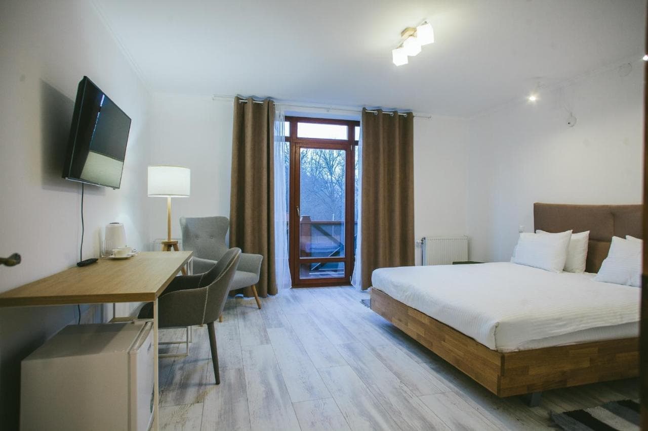 Ви можете зупинитися в одному з сучасних двомісних номерів або у дерев'яному котеджі, виконаних у скандинавському стилі. Всі номера забезпечені косметичними наборами, білосніжними рушниками, м’якими халатами та тапочками, праскою та дошкою для прасування, міні-сушкою, телевізором, холодильником, чайником, феном, сейфом.🌿