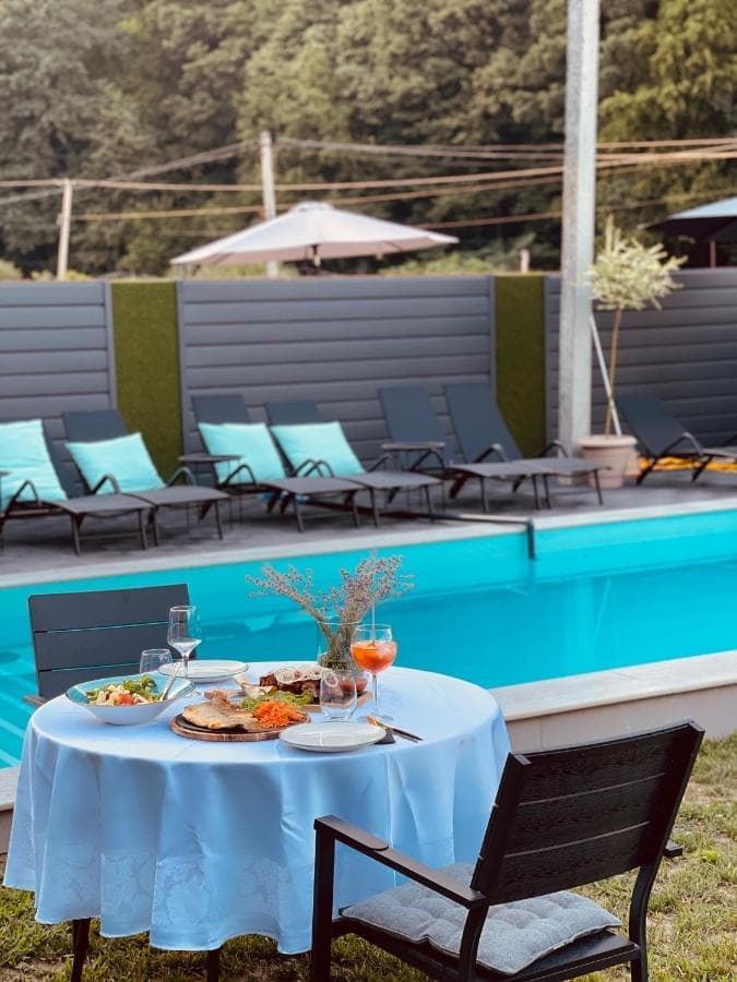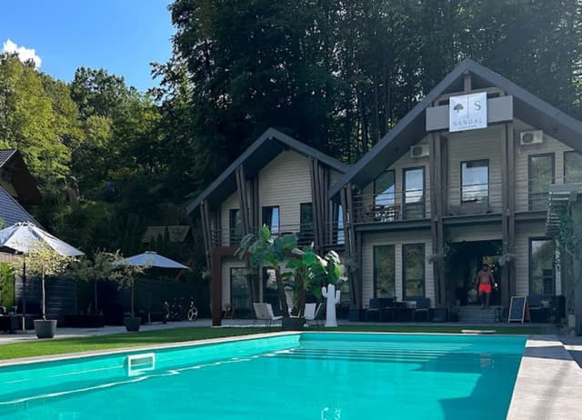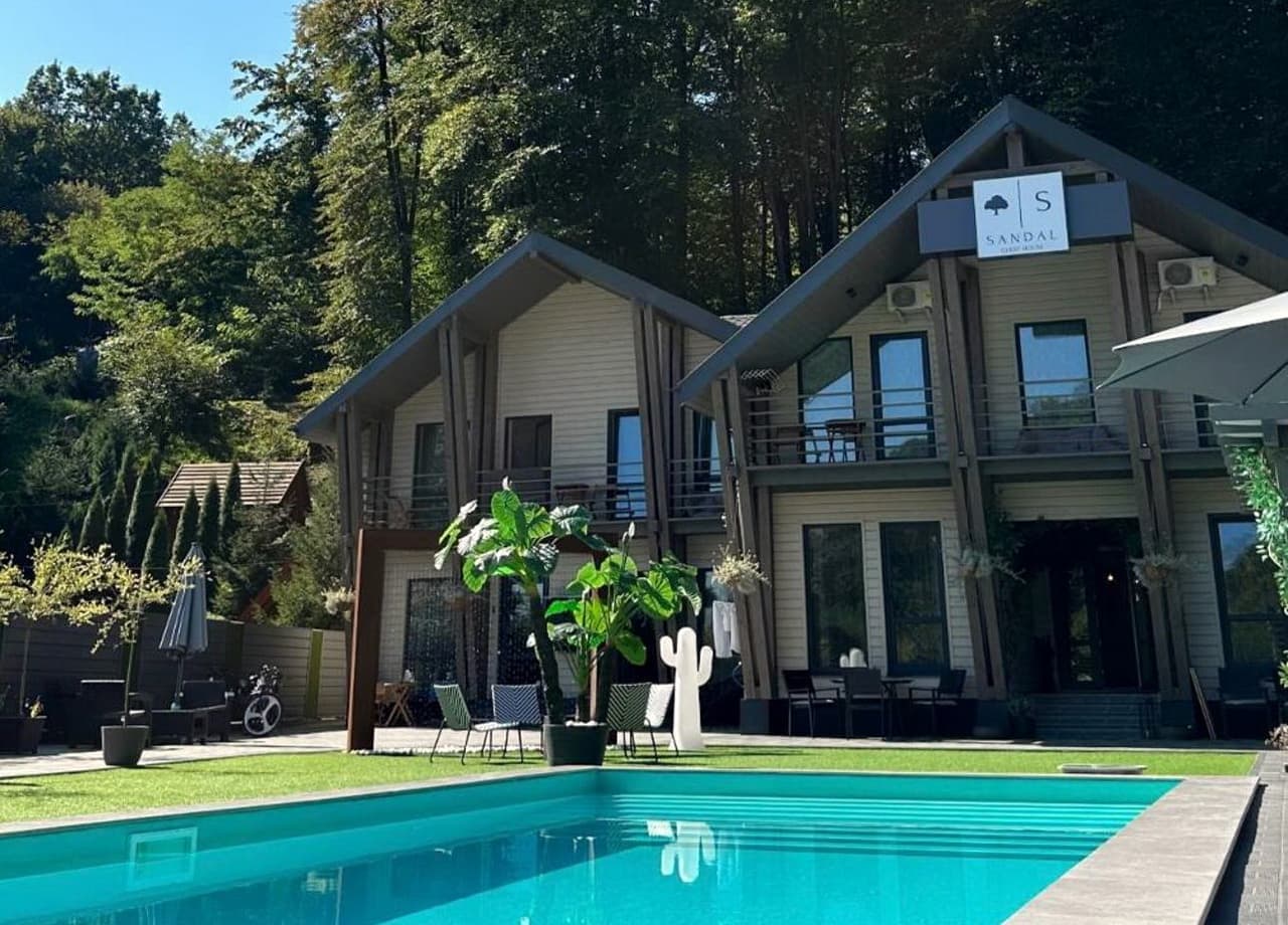 На території гостинного дому «SANDAL» є лаундж зона, де гості можуть приємно провести час, замовити кальян. Також є приладдя для барбекю. Є ресторан, де гості можуть замовляти харчування по гриль-меню. Також у розпорядженні туристів басейн з підігрівом.