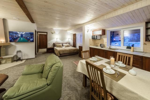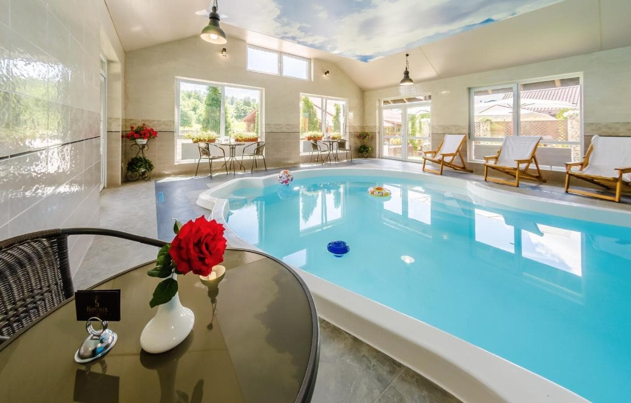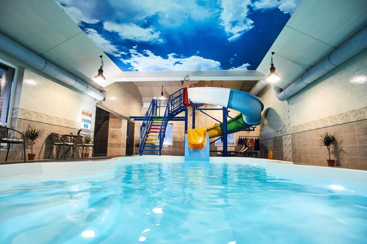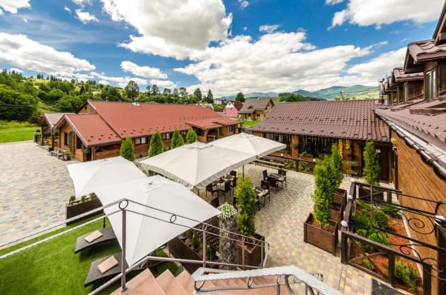 Готель розташований біля підніжжя карпатських гір зі своєю закритою територією, що охороняється, з високою якістю пропонованого сервісу, послуг, прекрасним басейном з водною гіркою, дитячим басейном для найменших (0-5років), розкішним SPA- центром і прекрасним рестораном!