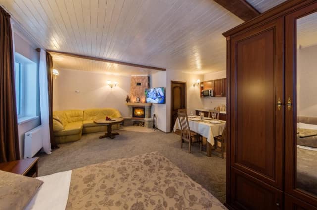 Апарт-готель «5 камінів» розташований в селі Ясіня, за 15 хвилин їзди від гірськолижного курорту Буковель. У всіх апартаментах працює безкоштовний Wi-Fi, а з вікон відкривається панорамний вид на гори.
