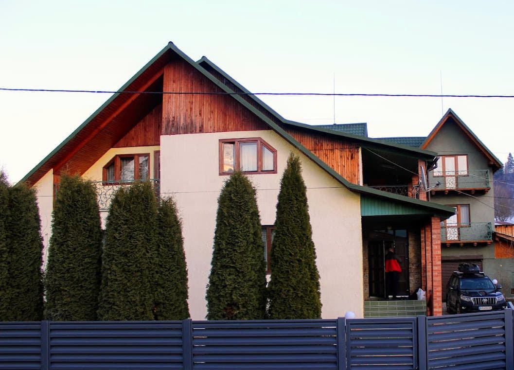 Міні-готель «Rosky» знаходиться у Ясінях і пропонує 8 комфортних номерів. Дизайн номерів зроблений у лаконичному і стриманому стилі. В кожному номері є власна ванна кімната, шафа, телевізор з пласким екраном. На першому поверсі готелю є велика зала для відпочинку наших гостей. У вітальні для користування гостей є мікрохвильова піч, електрочайник і потрібний посуд. Також ми надаємо гостям дуже смачні сніданки і вечері. На території для гостей є альтанка мангал і приладдя для нього. Безплатна стоянка для авто. Усю територію покриває якісний інтернет. Також на випадок вимкнення світла ми маємо автономну систему енергозабезпечення. Інформація про район