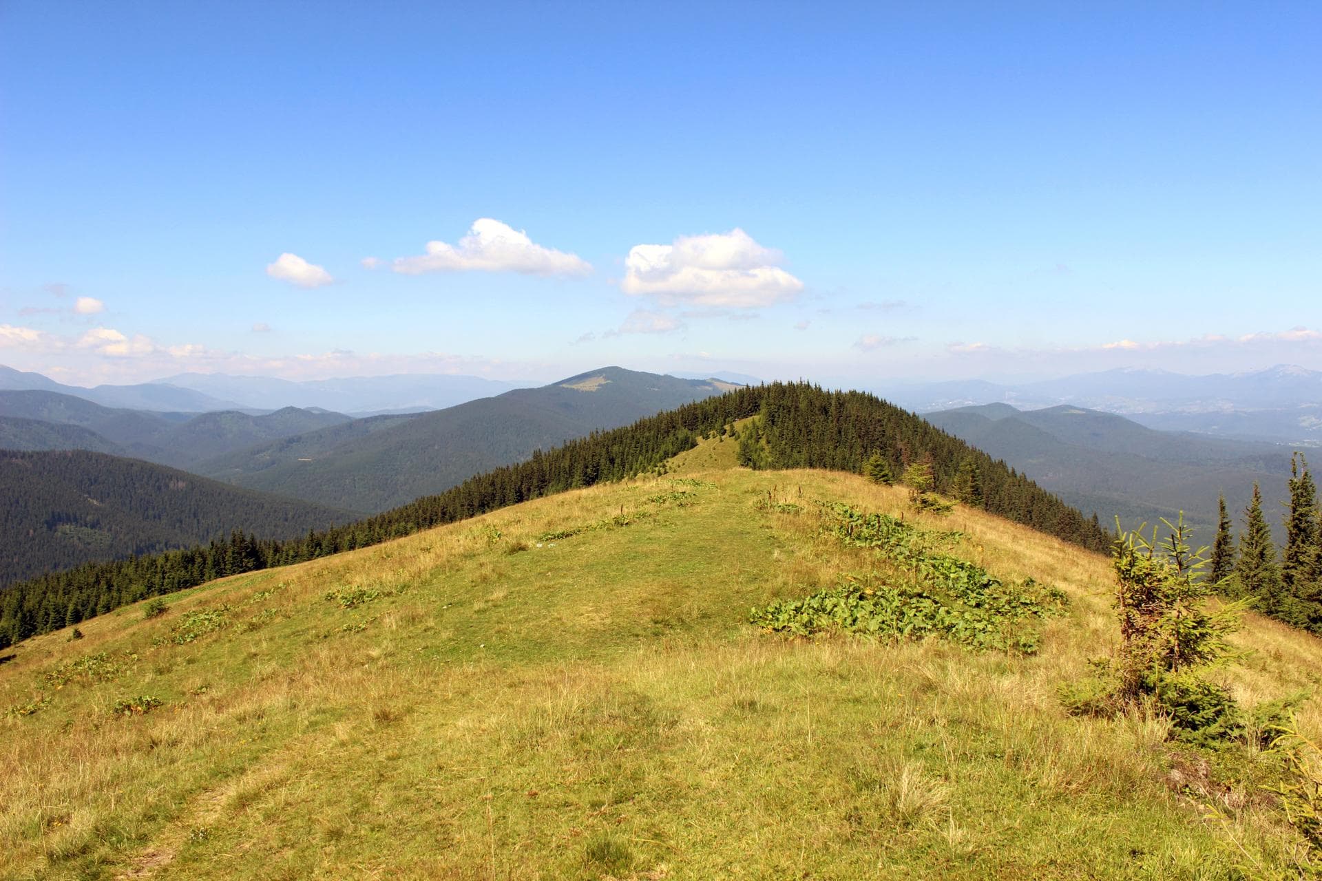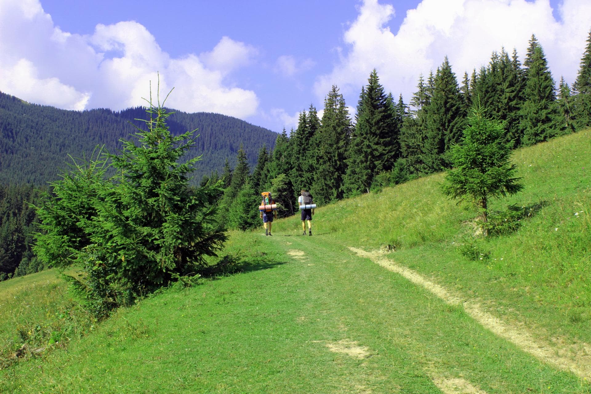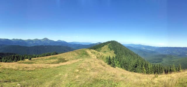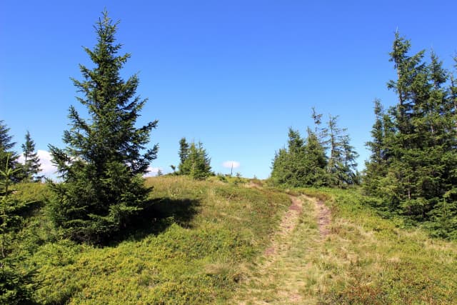 Провівши незабутню ніч в Карпатах - вирушаємо в напрямку лісу вгору по хребту. Щоб легше зорієнтуватись - це як ви піднімались із лісу червоним маршрутом, вийшли з лісу на полонину - тоді ліворуч, поглянувши трішки вверх стежина знову веде в ліс.