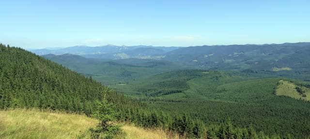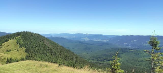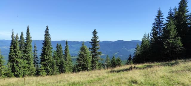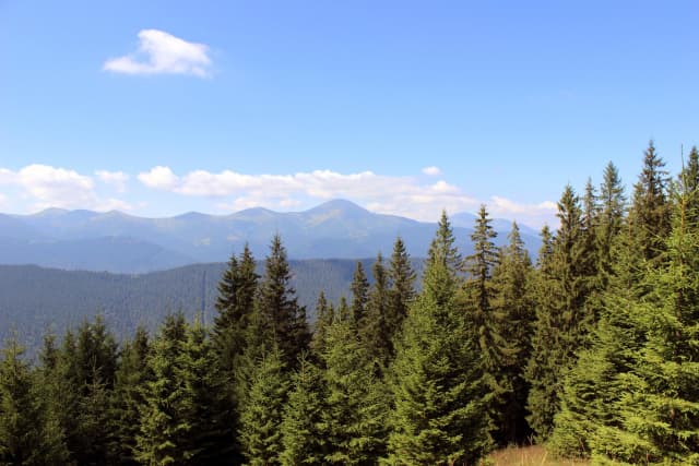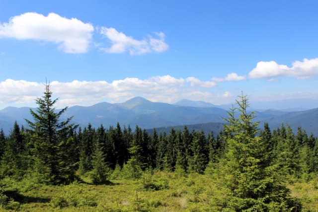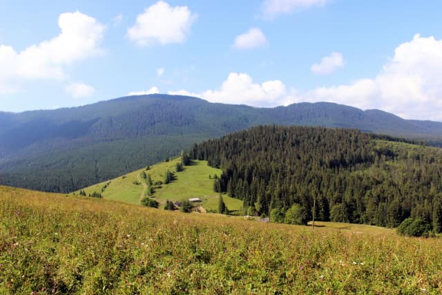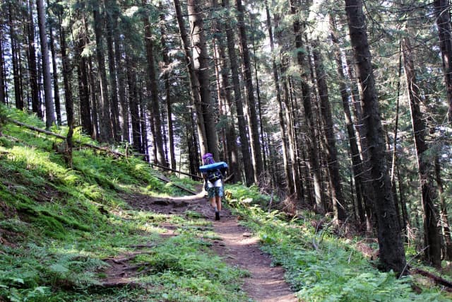 Від сироварні, вже милуючись красивими краєвидами сусідніх хребтів, рухаємось стежиною далі, яка плавно веде вгору. Через 1-2 десятка хвилин маршрут приведе Вас до затишного лісу - тут можете трішки відпочити, випити водички та вирушати далі.
