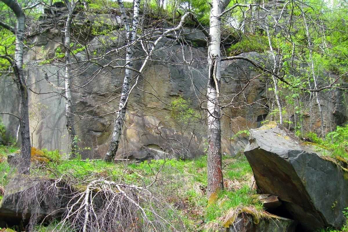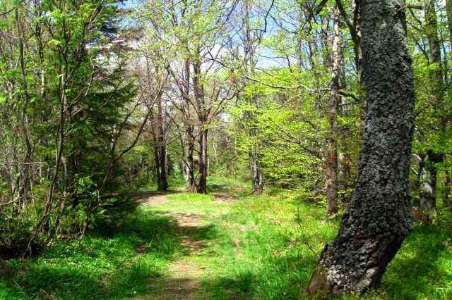 Досить-таки крутий підйом приведе мандрівника на пологий відрізок дороги. Поруч у лісі знаходиться масив скель, котрі мають досить-таки екстравагантний вигляд. Хоча, їх нелегко віднайти серед лісових буреломів та заростей, це справді варте того, щоб побачити це наживо. З цього місця дорога плавно повертатиме у напрямку на північний захід. Ліворуч відкривається зору чудовий вид скельної стіни. Якщо мандрівник вийде у верхній її частині на галявину, то зможе спробувати розшукати сам вхід у печеру Пілігрим та до доволі глибокої ущелини, що знаходиться у твердих пісковиках.