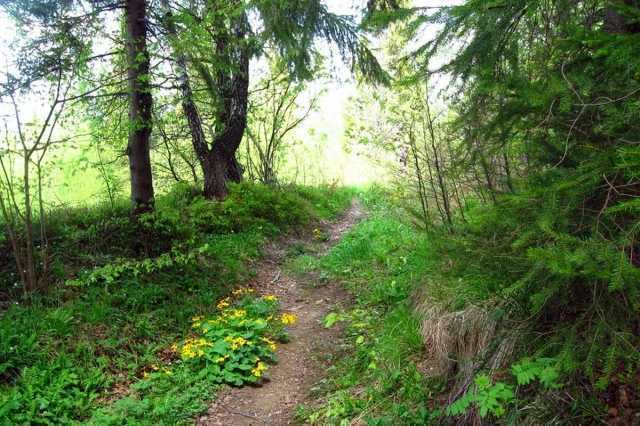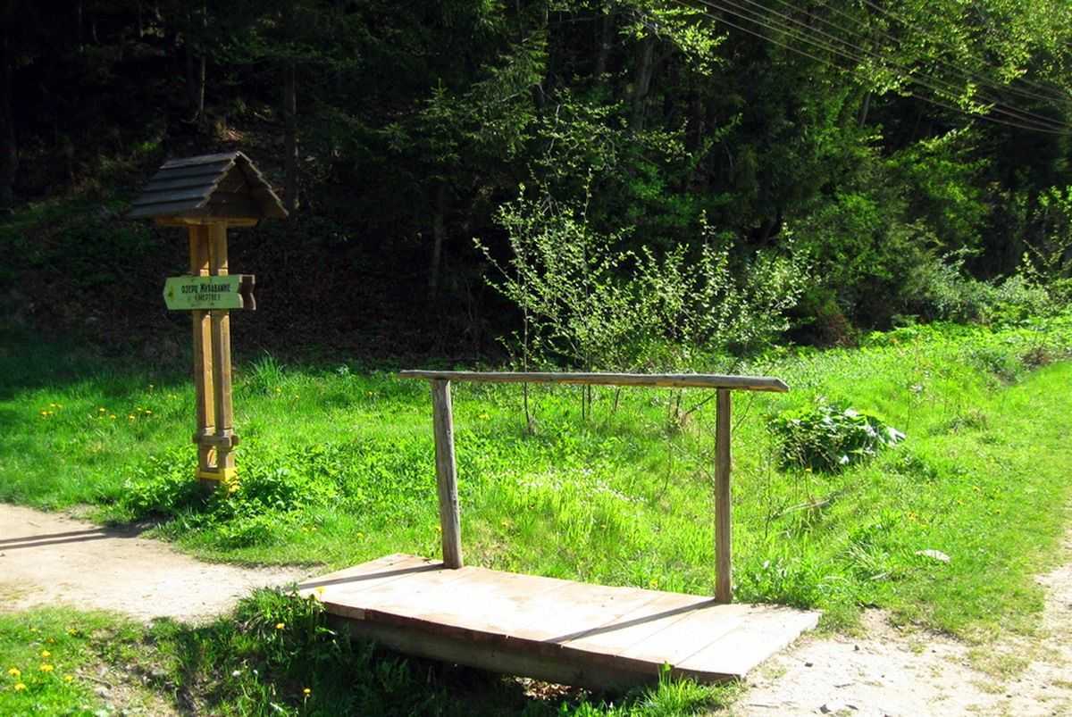 Проходимо трохи вище від водоспаду, де обабіч дороги, знаходиться два важливі об'єкти: джерело та маршрутний вказівник, що вказує напрям до озера Журавлине. На превеликий жаль, сьогодні озеро – це заросле болото, котре продовжує замулюватися та висихати. Бувалі мандрівники рекомендують знову повернутися до дороги, яка веде до поселення Кам'янка та пройтися нею ще хоча б один кілометр, де потік Лужки впадає у річку Кам'янка. У цьому місці слід зійти з головної дороги та продовжувати шлях грунтовою дорогою, уздовж потічка. З часом, пройшовши відрізок шляху повз потічок, проходимо два потічки, які впадають зліва у потік Лужки. Там, де впадає третій потічок Лужки, перетинатимемо дорогу, яка прямує із Кам'янки до Труханова. Саме з цієї дороги і ропочинаємо сходження на хребет вершини Ключ.