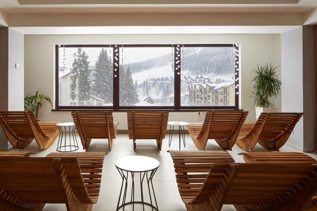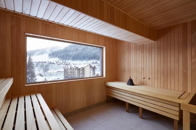 В отеле расположен большой СПА-центр и бассейн, а также ресторан, пиццерия, лаундж-зона, суши-бар, бесплатный паркинг и лыжная комната.