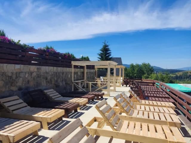 К услугам гостей сауна и летний бассейн. Комплекс «Домики на пеньках» - это отличный выбор для тех, кто хочет, насладиться свежим горным воздухом и девственной природой.