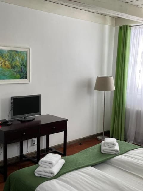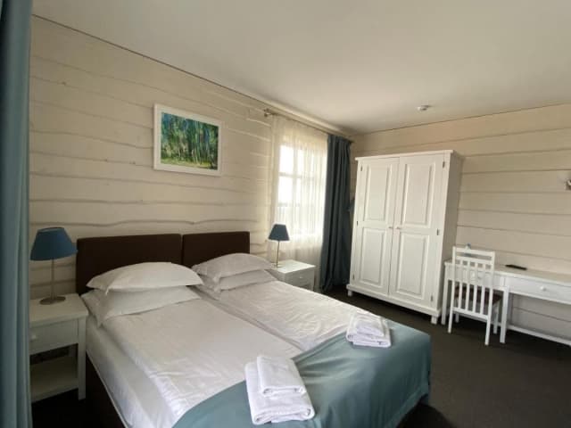 На втором этаже — 4 номера (в каждом — двуспальная или 2 односпальные кровати, шкаф для одежды, телевизор, санузел — душ, туалет, умывальник).
