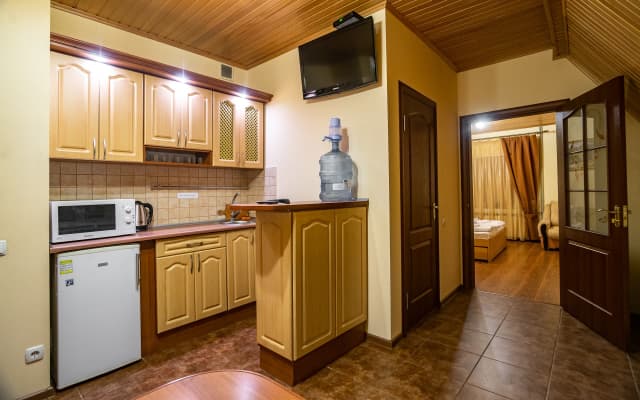 Вас ждут ознакомительные экскурсии с Яблуницким перевалом, поездки на полонину, посещение живописных водопадов и озер – все это и многое другое ждет гостей нашей гостиницы возле Буковеля. После насыщенного дня в горах вы можете расслабиться в настоящей карпатской бане из натурального дерева, устроить барбекю на мангале в зоне отдыха или разыграть партию на бильярде. Для детей обустроена игровая площадка. Для того чтобы сытно и вкусно питаться, вам даже не придется покидать виллу в Яблунице – у нас есть собственный ресторан украинской и европейской кухни. В ближайший продуктовый магазин не более 50 метров.