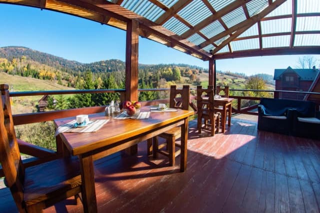 Мини-отель «Георгий» расположен в селе Орявчик, в 3 км до подъемников и 2 км от трассы Львов-Чоп. В гостиницу ведет удобный асфальтированный подъезд. «Георгий» – большой, трехэтажный, деревянный коттедж гостиничного типа. На территории есть автостоянка, беседка, веранда, терраса, бильярд, сауна и кафе-бар.