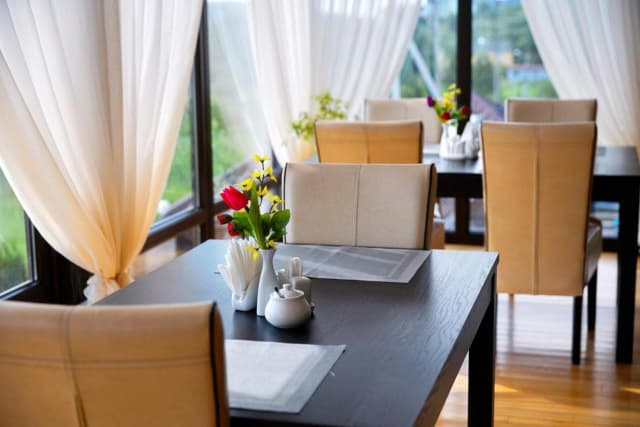 Завтрак подается в форме шведского стола с уникальной программой, разработанной диетологом. Меню включает в себя разнообразные каши, мюсли, фруктовые и овощные салаты и десерты. На обед и ужин гости могут выбрать из комплексного меню (за дополнительную плату). Большие семьи могут заранее заказать блюда у шеф-повара.