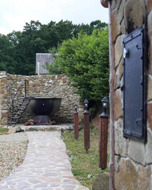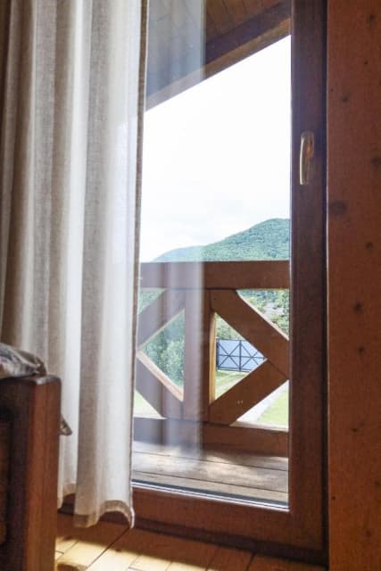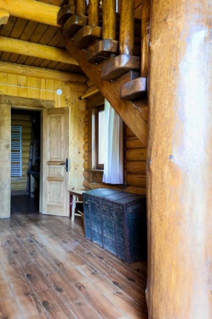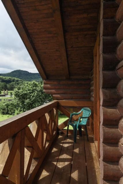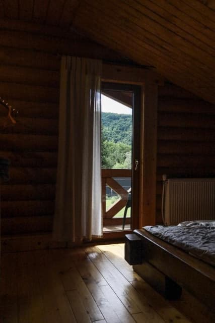 Деревянный коттедж имеет 3 спальни на втором этаже с выходом на балкон с видом на горы, а на первом этаже - кухню с отдельным выходом на террасу, гостиную и санузел. Кухонная техника включает все необходимое для самостоятельного приготовления пищи, включая микроволновку, холодильник с морозильной камерой, электрическую варочную поверхность и посуду. Номера обставлены деревянной мебелью ручной работы в деревенском стиле.