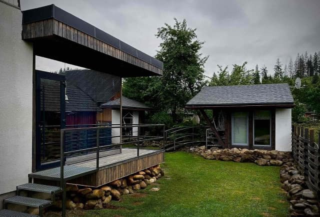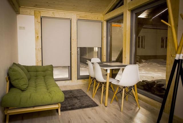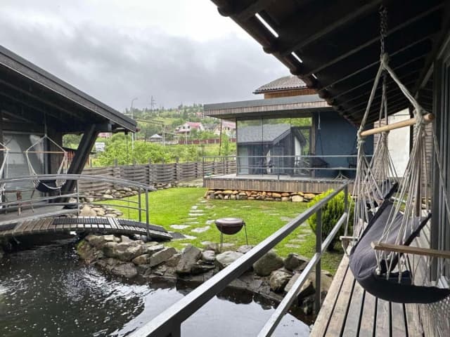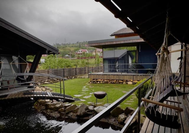 Уютные коттеджи «Veranda» расположены в центре курорта Славское во Львовской области. На территории есть 3 коттеджа, каждый дом на 2-х человек. Также есть ухоженная территория с прудом и рыбками. Гости могут рыбачить и сразу жарить свежую форель на мангале.