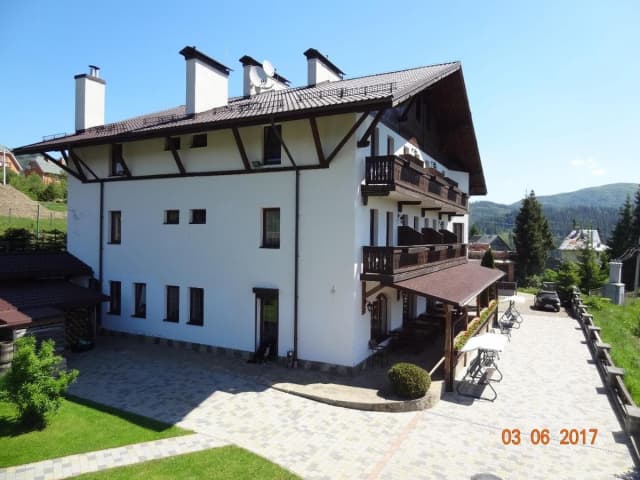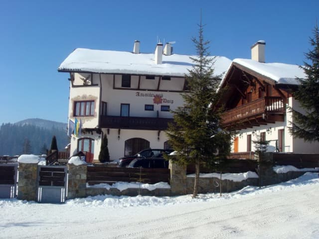 Пансион «Альпийский двор» построен в 2007 году в стиле «альпийского шале», пансионат расположен на горном склоне на высоте 674 метра над уровнем моря в экологически чистом районе курорта Славское.