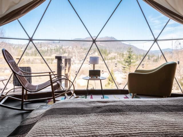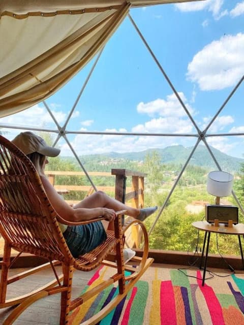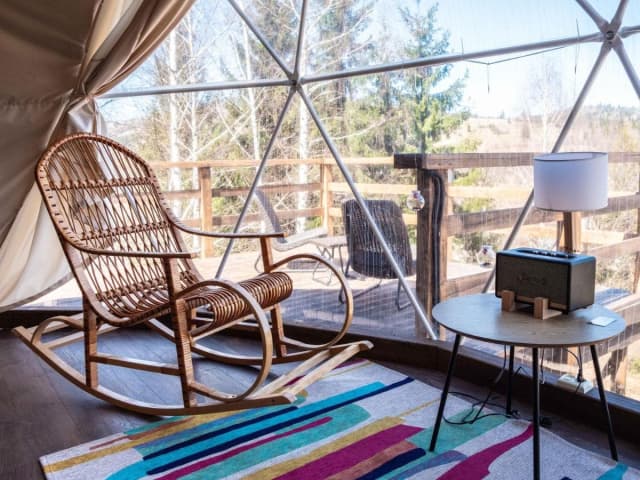 «SlavskoGlamp» глемпинг – это купольная гостиница, расположенная в Славском, из которой открывается прекрасный вид на украинские Карпаты. Отель состоит из трех куполов, каждый из которых имеет свою террасу, где можно насладиться тишиной, красотой и величием гор. Из панорамных окон сфер открывается уникальный вид на карпатские горы, а комнаты наполнены естественным светом и напоминают нам о нашей постоянной связи с природой.
