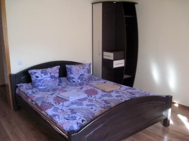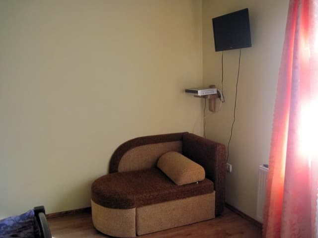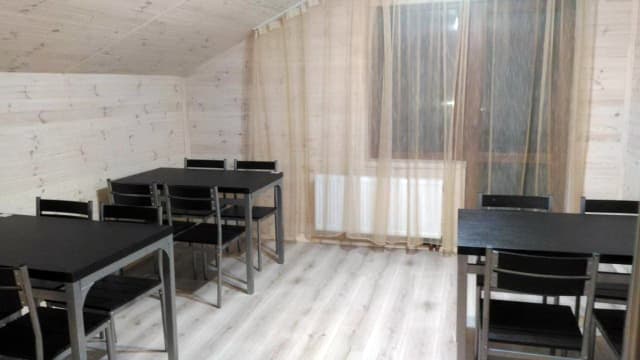 На третьем этаже - кухня (электрическая плита, микроволновка, холодильник, электрический чайник, посуда, мойка, обеденный стол); 3 двухместных номера (1 двуспальная кровать или 2 односпальные кровати, шкаф для одежды, балкон, санузел с душем, туалетом и умывальником).