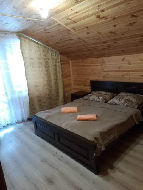 На втором этаже - три двухместных номера (в каждом двуспальная кровать или две односпальные кровати, шкаф для одежды, балкон, санузел с душевой кабиной, туалетом и умывальником); в одном номере есть дополнительное место (раскладной диван); в одном номере есть раскладной диван (раскладная кровать).