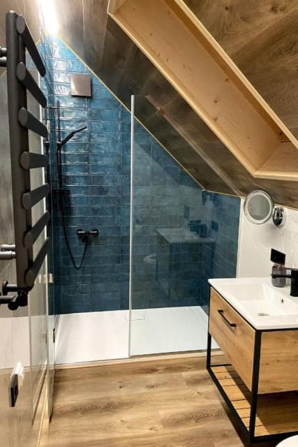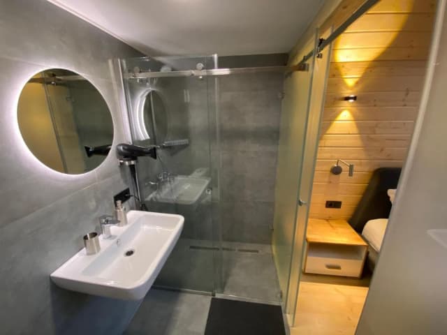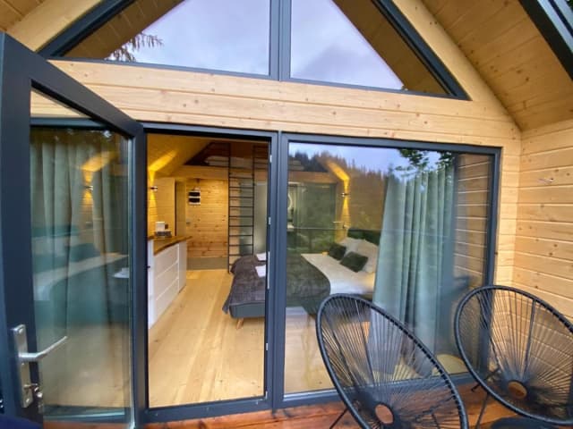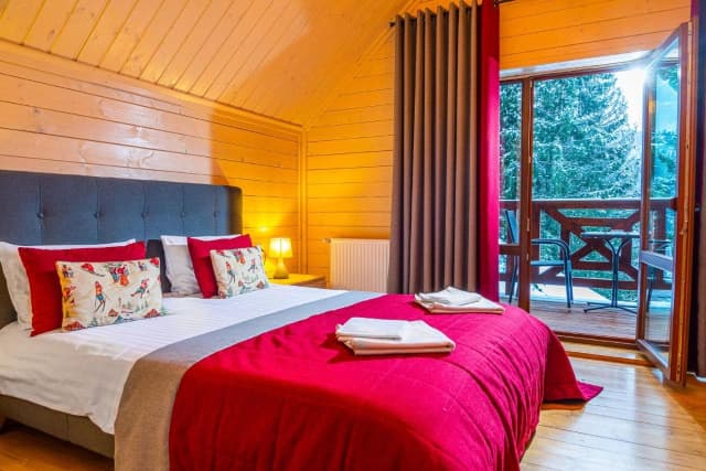 Люкс с видом на горы – это коттедж для пары с большим панорамным окном;