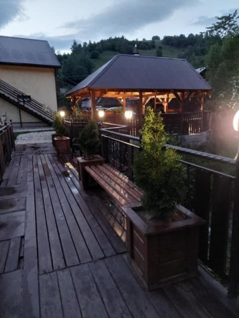 В отеле «Вокруг Гор» гости могут заказать блюда закарпатской и украинской кухни. Подают еду в уютной хижине или по желанию клиента есть обслуживание в номерах.