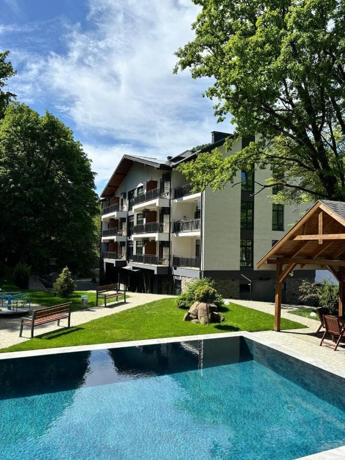 Отель «Apartel Shayan Eco Resort» состоит из 60 просторных апартаментов с удобной продуманной планировкой, которые созданы с учетом любых потребностей наших гостей, с использованием изысканного авторского дизайна, лучших экологических материалов, качественной мебели, современная техника и комплектующие известных мировых производителей. Из окон и балконов каждого номера открываются виды Карпатских гор и живописного поселка Шаян. Все апартаменты оснащены стиральными машинами, а также кухнями-столовыми с холодильником, микроволновкой, индукционной плитой, посудой и приборами: гости имеют возможность готовить для себя в любое время, просто в собственном номере, как у себя дома.