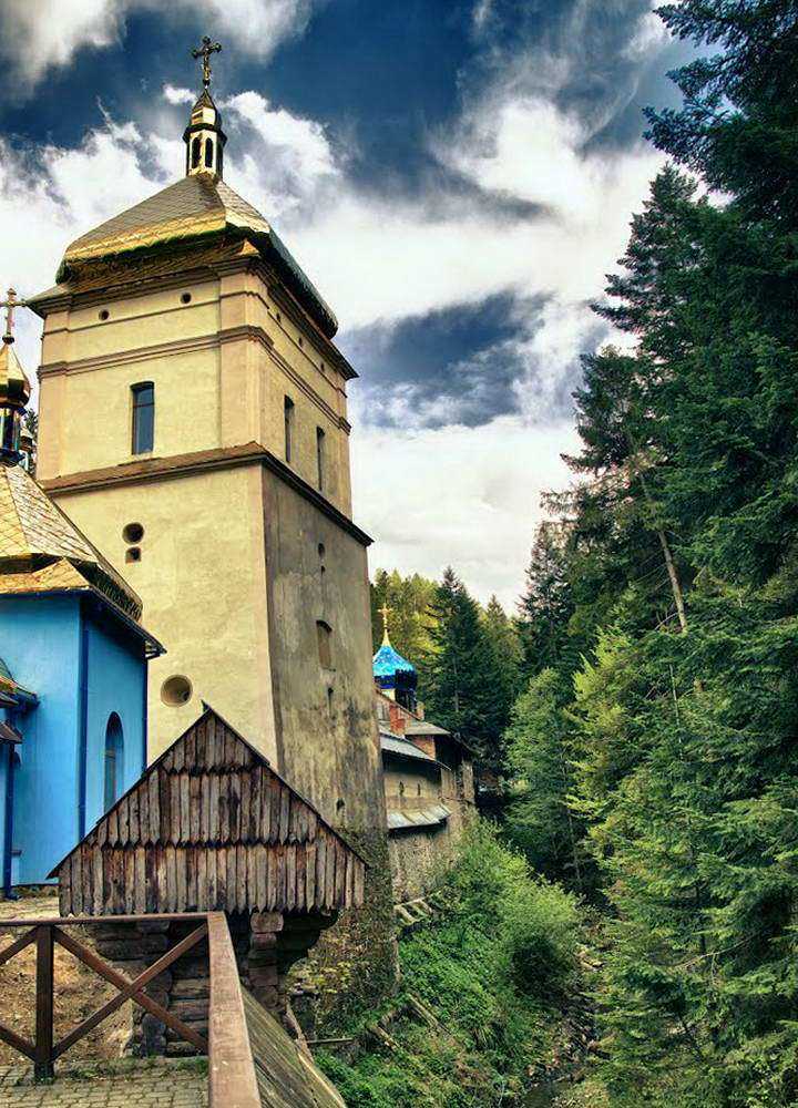 Это целый монастырский комплекс, посещаемый тысячами мирян каждый год. На сегодняшний день – это мужской монастырь, принадлежащий православной церкви Киевского патриархата. Основателем комплекса считается выходец из Афона, игумен Иов Княгиницкий. Он заложил краеугольный камень монастыря в 1611 году. Сразу была построена крепость для обороны комплекса. По ее периметру были возведены три оборонных башни, которые носили следующие названия: Сокровищница, Стрелецкая, Колокольня. Именно Колокольня была наделена удивительными умениями. Согласно преданию, колокола сами извещали о приближении врага, а их «тревожный зов» был слышен вплоть до Станиславова. Сама природа позаботилась о защите святыни: с одной стороны – река Манявка, с другой – гора Вознесенка. Люди со спокойной душой доверяли свою жизнь и безопасность этим неприступным стенам. Скит был хранительницей не только человеческих душ, но и очагом, который питал человеческий разум. За стенами монастыря была невероятная библиотека с редкими экземплярами, поэтому монастырь был известен далеко за пределами страны. Подлинный художественным шедевром, без всякого сомнения, можно выделить главный церковный иконостас мастера Кондзелевского. Святыня просуществовала в относительном мире и покое до 1785 года.