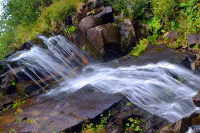 И так, чтобы добраться до места назначения, нужно отправиться из села Дземброня в направлении вершины Смотрич. А это примерно 5 км или 2 часа вашего времени. Хотя те пейзажи, которые встретятся вам на пути, могут задержать вас и подольше. Нельзя описать эту красоту, одним словом – Карпаты! Когда тропа приведет к полонине, за одиноко стоящей колыбой нужно повернуть направо. И дальше двигаться по той же тропе. Почти на выходе из леса вы услышите, как поет вода. И, наконец, вашим глазам откроется, без преувеличения, один из самых красивых карпатских водопадов. Но не нужно останавливаться на первом увиденном каскаде. Ведь помним: длина водопада 100 метров, и его интереснейшие места спрятаны от человеческого глаза. Нужно пробираться не очень удобным, подчас скользким путем вверх – но результат вас не разочарует.