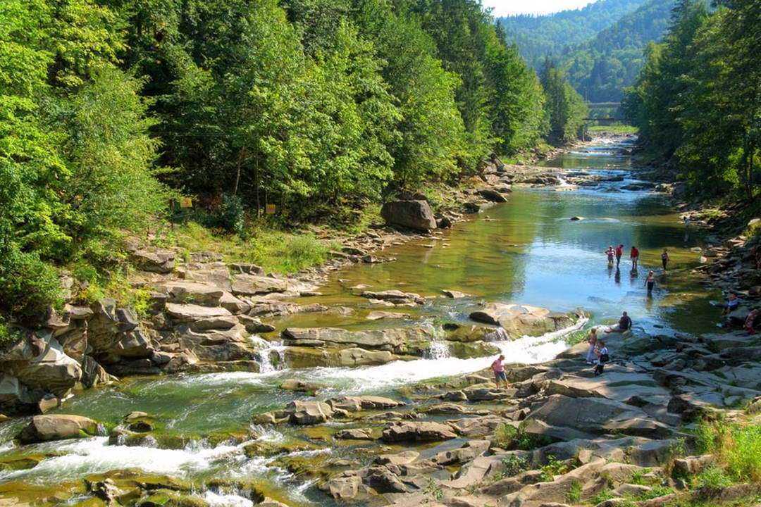 Интересно и то, что прямо у самого водопада расположился сувенирный рынок. Поэтому запасайтесь не только фотоаппаратом, но и деньгами. Искусно изготовленные народные изделия просто не оставят вас равнодушными. А еще, что сразу станет ощутимым – это то, как свободно станет дышать. Несмотря на трассу и множество автомобилей и автобусов с туристами, воздух в городе Яремче кристально чист и свеж. Как и вода в Пруте. Конечно, если вы не попадете туда после дождя, который не только лучше очистит воздух от дорожной пыли, но и поднимет ила в реке. Из-за чего вода станет грязной.
