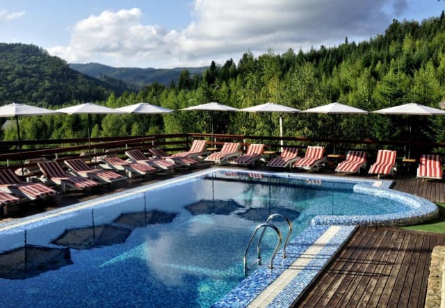 Літній басейн у Карпатах: справжній релакс з неймовірним видом на гори.
